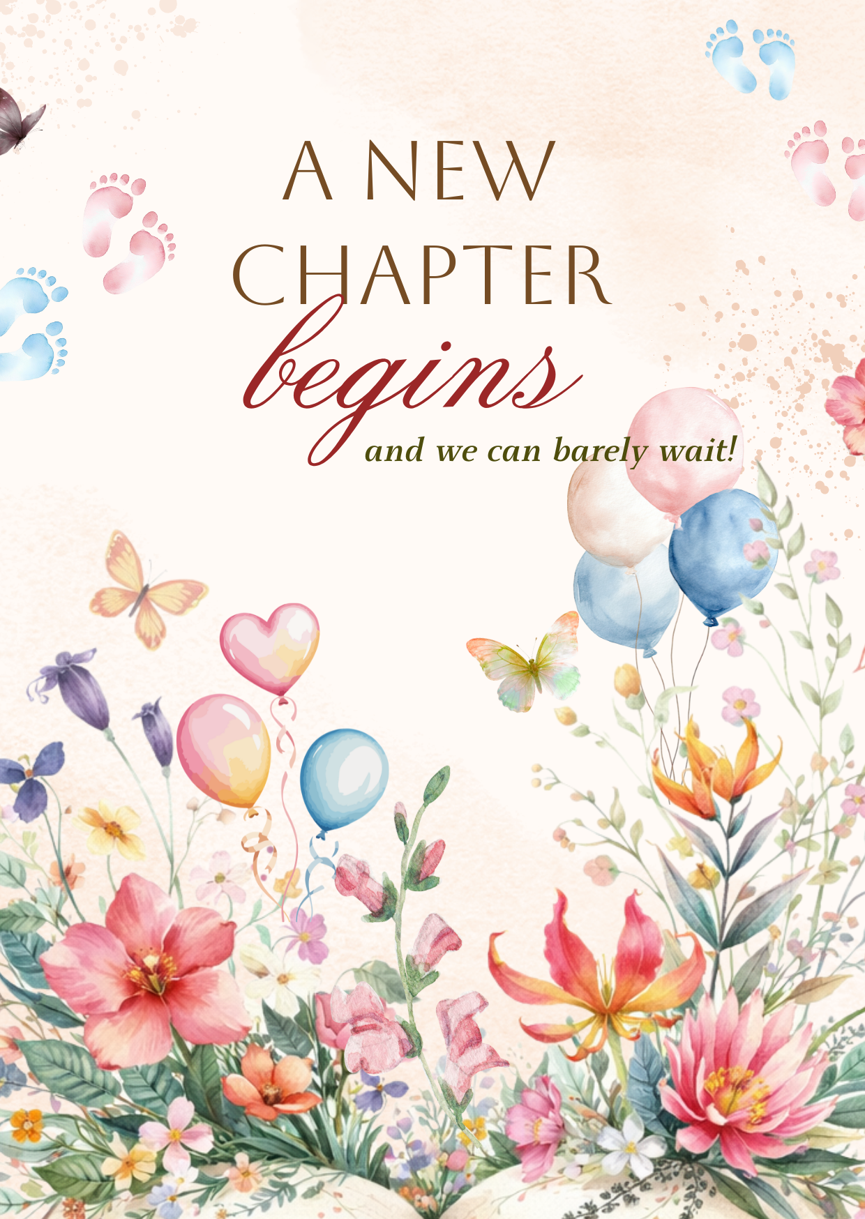 Announce the arrival of your bundle of joy with this beautiful Flower Baby Shower invite! Featuring delicate floral designs that symbolize new beginnings and fresh chapters, this invitation sets a warm, welcoming tone for your celebration. The soft botanical elements create an elegant backdrop to share your exciting news with loved ones. Perfect for expecting parents ready to embrace this magical journey, these invites blend grace with joy—inviting guests to be part of your special moment.